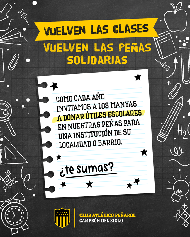 Como cada año, las Peñas impulsan la campaña solidaria "Vuelta a Clases con Peñarol" para colaborar con aquellos que más lo necesitan.