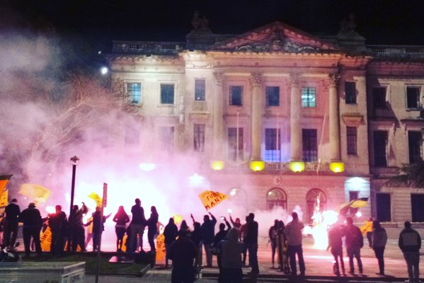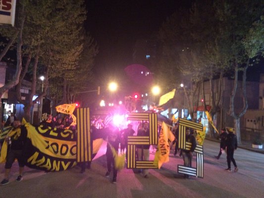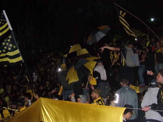 PEÑA CANELONES POR PEÑAROL- Para los integrantes de la Peña "Canelones por Peñarol", la noche de los festejos fue un éxito. "Contamos con unas 300 personas, se invirtieron cerca de 20 mil pesos entre bombas, tortas, bengalas, candelas, bombas de humos, etc. Para recaudar ese dinero recurrimos a ventas de remeras con el slogan 'Canelones respira Peñarol', un campeonato de truco y una rifa. Salió todo como esperabamos", contó Énzo, miembro de la Peña.