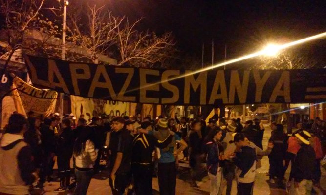 PEÑA DE LA PAZ- La Peña "Octavio Darío Rodríguez" y todo el pueblo Carbonero de la ciudad de La Paz se hicieron presentes en la celebración del cumpleaños del Club, tal como sucede desde el 2011. Lanzaron fuegos artificiales, acompañados de los cánticos habituales de la hinchada.