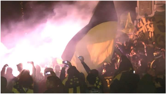 PEÑA DE TRANQUERAS- La agrupación de Socios "Walkir Silva" de Tranqueras organizaron una caravana que partió desde el ingreso a la ciudad, Tranqueras, a la hora 22:30 del día martes 27 de setiembre, recorriendo la principal avenida en todo su trayecto. La misma culminó en la Plaza 22 de julio. Según contaron los miembros de la Peña, "La plaza estaba ornamentada con banderas, globos, pantalla gigante, equipos de sonido y luces acordes al festejo. En la pantalla gigante se proyectaron momentos del gloria del Club para el público que esperaba la llegada de la caravana. El encuentro de los participantes de la caravana y el público presente en la plaza dio lugar a la continuación del festejo, el cual continuó con la percusión, cánticos, bengalas, humos, culminando a la hora 00:00 del día miércoles 28 de setiembre con fuegos artificiales"