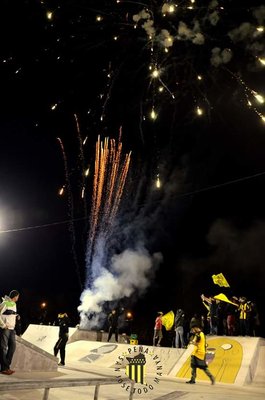 PEÑA DE ECILDA PAULLIER- La Peña "La Fiera Aguirre" también se sumó a las celebraciones del cumpleaños Carbonero. La agrupación de Socios se reunió para compartir la llegada del aniversario, y a la medianoche hicieron estallar el cielo de la ciudad con una gran candidad de fuegos artificiales.
