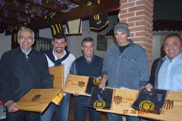 PEÑA DE RIVERA- Este año la Peña de Rivera, en conmemoraciòn de los 125 años del Club Atlético Peñarol, organizó una reunión con algunos riverenses que supieron vestir la gloriosa camiseta oro y carbón, conquistando varios titulos y aportando su granito de arena a la rica historia de la institución. Contaron los miembros de la Peña que "Estuvieron con nosotros Wilmar Etchechury (Primer Riverense Campeón de la Libertadores y del Mundo consagrandose en 1966), Luisito Pereira (quien jugó en Peñarol en 1968), Luis "Garotinho" Nunes (nacido en nuestra frontera, quien jugó en Peñarol y se consagro campeòn Uruguayo en 2003) y Walkir Silva (autor del último gol mas importante de la historia de Peñarol, El gol en la final de Tokio que nos dio el 3er Titulo Mundial en 1982). Lamentablemente Bengoechea no se encontraba en nuestra ciudad, pero les dejó un saludo muy afectuoso a cada uno de ellos".